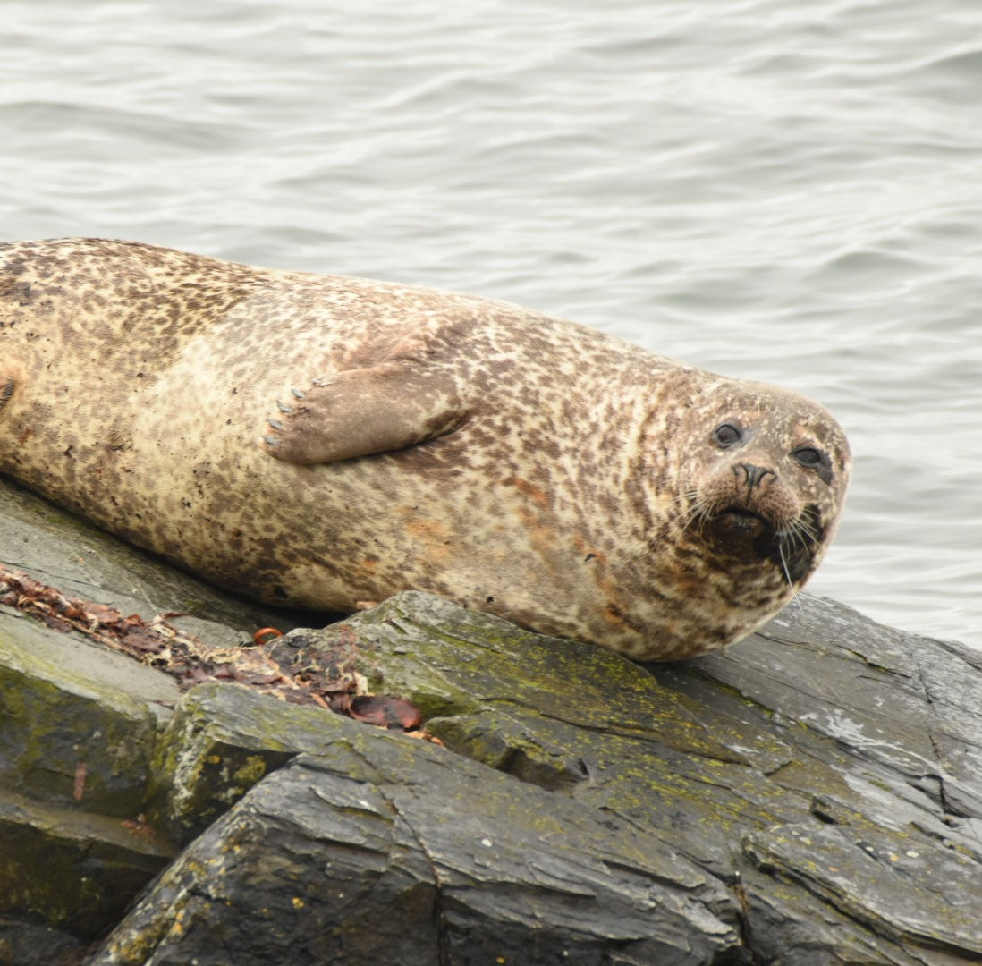Seals: Harbour seals can live for up to 20-30 years. Adult harbour seals are about 1.5 m in length and can weigh in the region of 80-100 kg. It’s hard to tell males and females apart, but males are slightly larger than females. Harbour seals have a rounded, dog-like head, with a steep forehead and eyes to the front of their face.